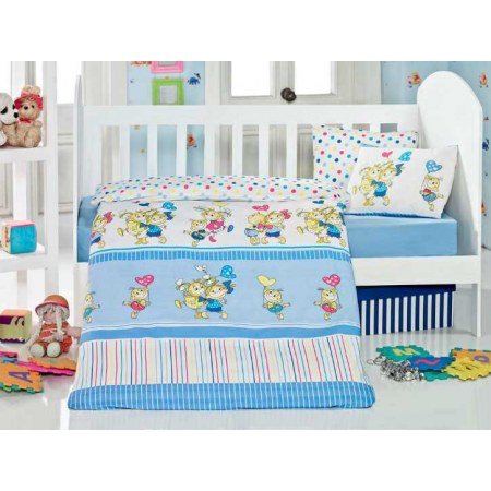 Перед вами детское постельное бельё в кроватку для новорожденных Pitircik Mavi от турецкого производителя Eponj Home.