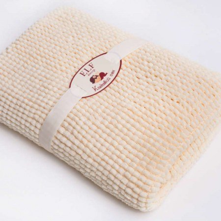Дитячий плед ТМ ELFdreams, зв'язаний руками, обов'язково сподобається малюку своєю ніжною фактурою. Виріб виконаний із штучної нитки, тобто з мікрополіестру. Це дуже м'який та теплий матеріал, такий саме, як і мамині обійми.