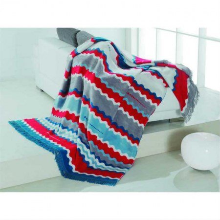 Плед «Paradox» имеет красно-синюю расцветку в виде волнистых полосок и представлен в размере 150 на 200 сантиметров.