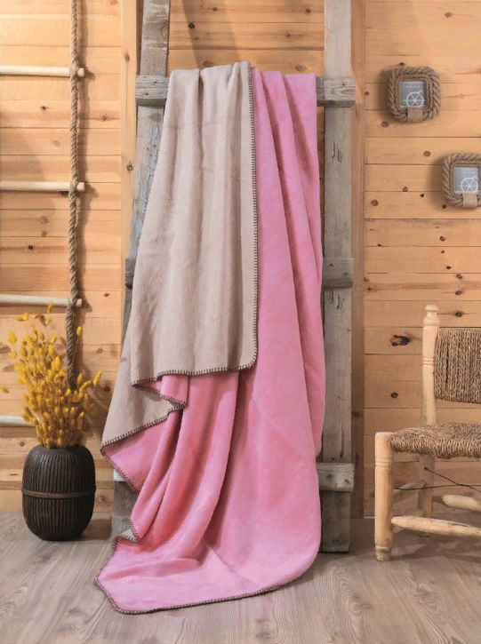 Двусторонняя модель Pembe Bej имеет окраску с одной стороны розовую, а с другой бежевую. Края аккуратно оторочены.