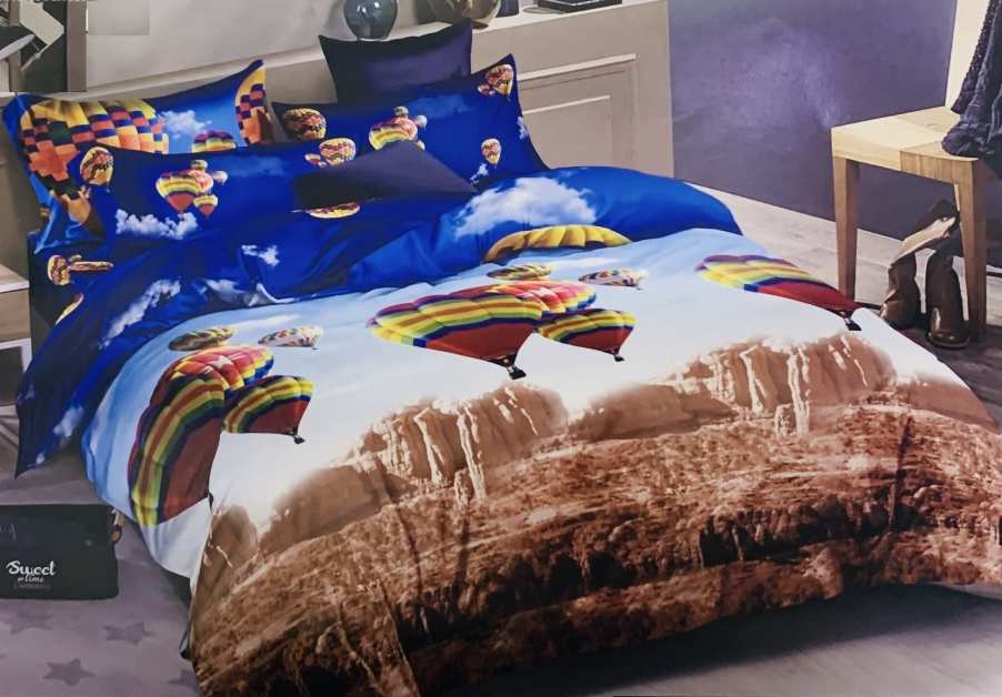 Размер: простынь 150*210 см, пододеяльник на молнии 150*210 см, 1 наволочка 50*70 см.