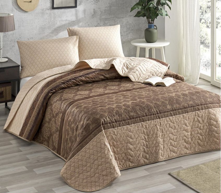 Стеганное покрывало Eponj Home Creative kahve с наволочками