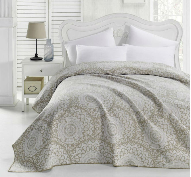Жаккардовое покрывало Eponj Home Mandala hardal горчичное 200*230