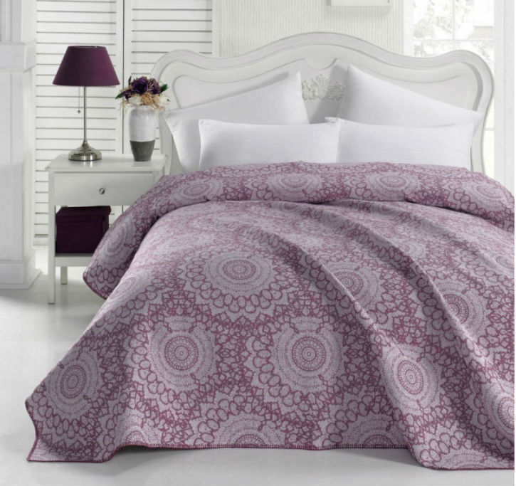 Жаккардовое покрывало Eponj Home Mandala mor фиолетовое 200*230