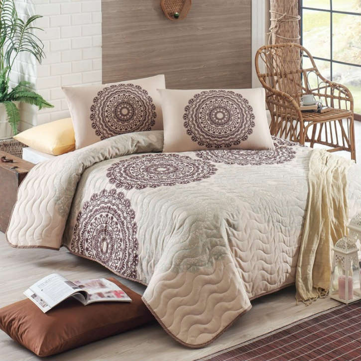 Турецкий производитель Eponj Home представляет стёганое покрывало на кровать Figura bej в наборе с наволочками.