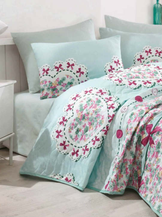 Турецкий производитель Eponj Home представляет стёганое покрывало на кровать Lovely mint в наборе с наволочками.