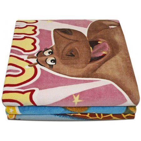 Для Вас есть возможность купить детские большие полотенца коллекции "Мадагаскар 3", 100х150 см, с особенным образом обработанной поверхностью – велюром. Это специальная обработка махровой ткани, после которой она на ощупь становится очень мягкой, похожей на плюш, и приобретает серебристый отлив.