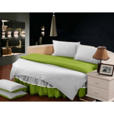 Постельное белье круглое Almira mix сатин Premium 220 Белое с салатовым
