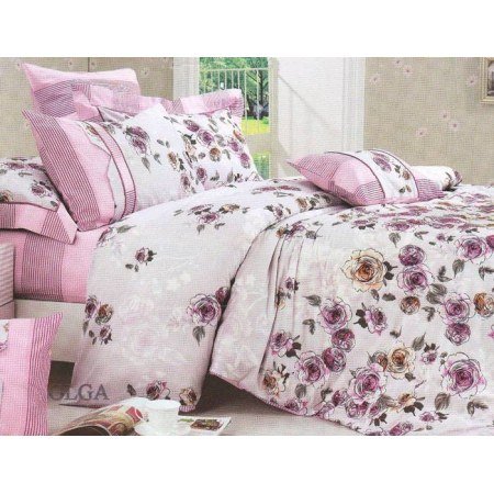 Модель "Ольга" выполнена в нежных розовых тонах с изображением чудесных цветов. Простыня чуть темнее и в полоску. Пододеяльник с карманом на молнии.