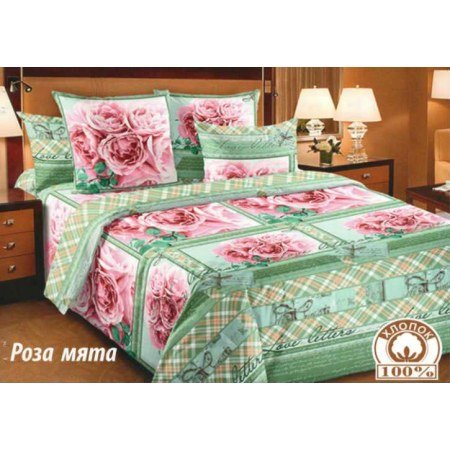 Модель "Роза мята" в бирюзво-розовых тонах с розами выполнена из прочной хлопчатобумажной ткани, устойчивой к стирке в горячей воде до 90 градусов.