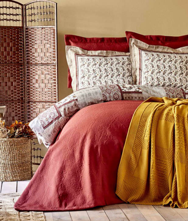 Постельное бельё Karaca Home + плед + покрывало Maryam bordo