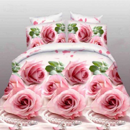 Комплект 251150 белого цвета с объёмным изображением больших розовых роз занимающих практически всё пространство.