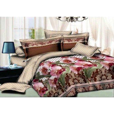 Комплект 251178 выполнен в коричневых тонах с объёмным реалистичным изображением розовых орхидей.