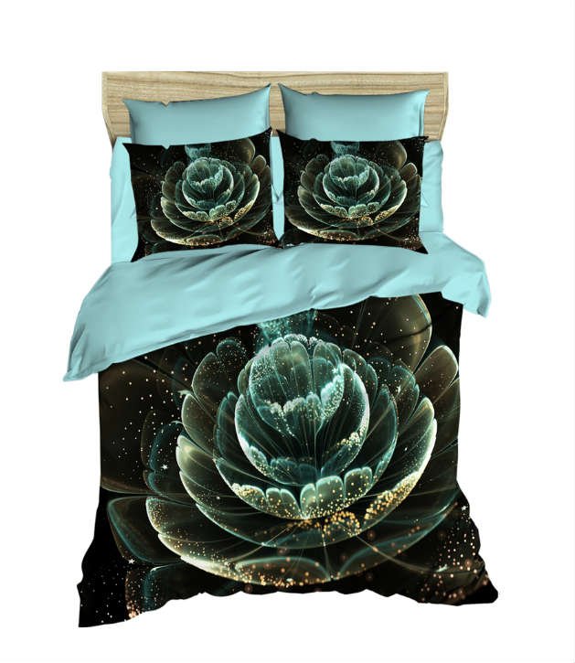Верх пододеяльника с 3Д рисунком пошит из мягкой микрофибры. Низ пододеяльника, как и простыня с наволочками шьются из натурального хлопчатобумажного материала.
