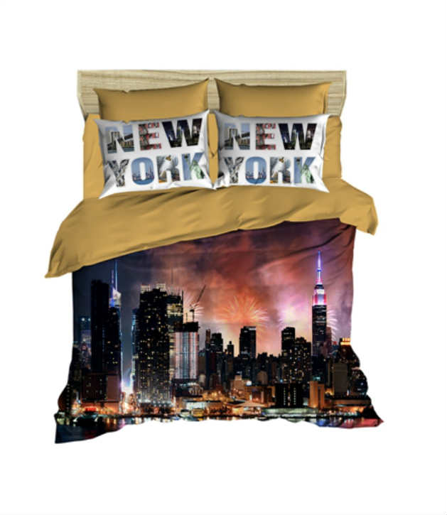 Модель New York выполнен в светлых тонах с объёмным коллажем из перьев на пододеяльнике.