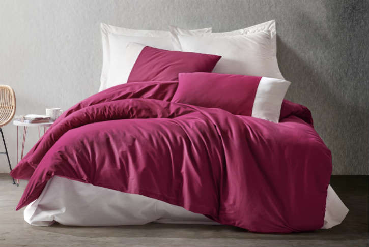 Комплект постельного белья евро размера Plain Bordo Krem пошит турецким производителем Cotton Box из двух частей однотонного ранфорса - бордового и кремового цвета.