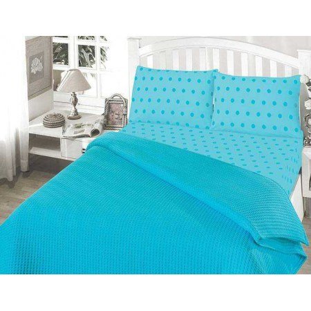 Комплект постельного белья в стиле пике Perlay Cotton бирюзового цвета всегда будет неповторимой уникальной оригинальностью и в то же время незаменимым атрибутом Вашей спальни в летнюю пору.