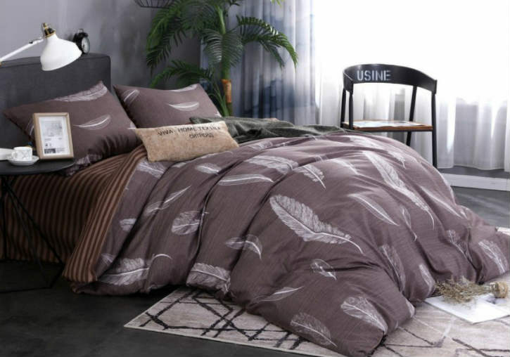 Модель ST 230 коричневого цвета с белыми перьями на пододеяльнике.