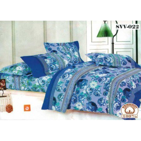Модель "SVV-022" в сине-голубых тонах с синими цветами выполнена из прочной хлопчатобумажной ткани, устойчивой к стирке в горячей воде до 90 градусов.