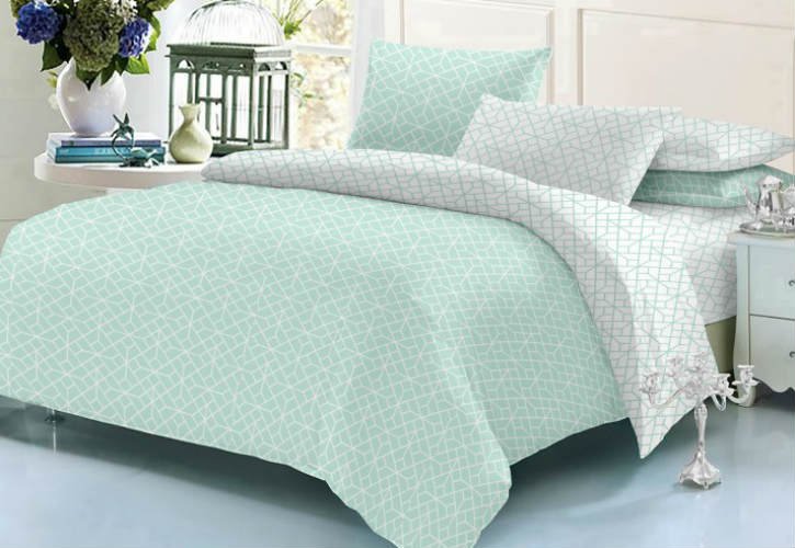 Модель Homely Mint с двухсторонним пододеяльником из качественной бязи, в состав которой входит 100% хлопок. Верх пододеяльника голубой, а простынь и низ пододеяльника - белый.