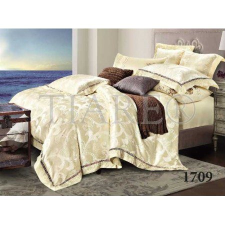 Интернет магазин "Баюбай" представляет Вам линейку постельного белья украинской швейной фабрики "Вилюта" - Satin Tiare Jacquard сшитого из стопроцентной хлопковой ткани сатин-жаккард. Визуально этот материал похож на атлас, с той лишь разницей, что при изготовлении атласной ткани используется шёлковая нить, а для жаккарда - хлопковая. Особенность плетения состоит в том, что узоры получаются, как бы выпуклыми, их можно почувствовать на ощупь.