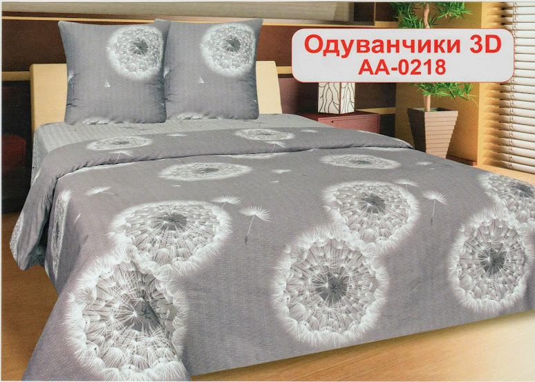 Модель AA-0218 с воздушными одуванчиками на сером фоне выполнена из прочной хлопчатобумажной ткани, устойчивой к стирке в горячей воде до 90 градусов. Только помните, что из-за такой высокой температуры хлопковая ткань садится на 5-10 см.