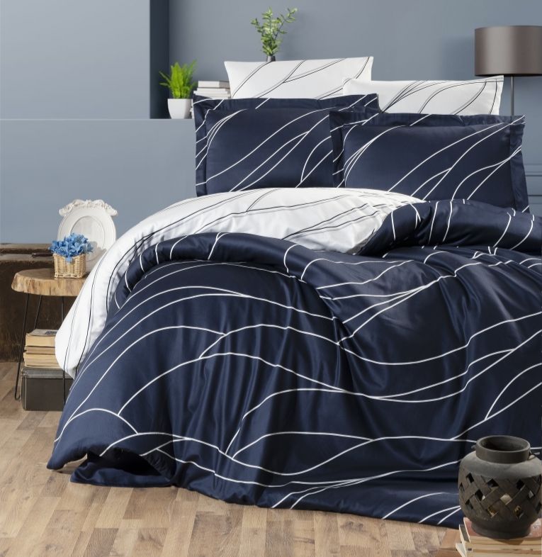 Постельное белье First Choice Satin Cotton Mesi Navy Blue
