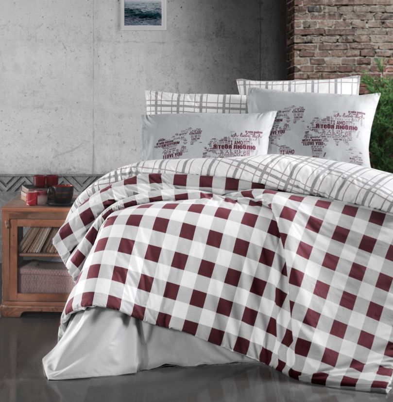 Постельное белье First Choice (Турция) ранфорс Edmon Dark Red Клетка
