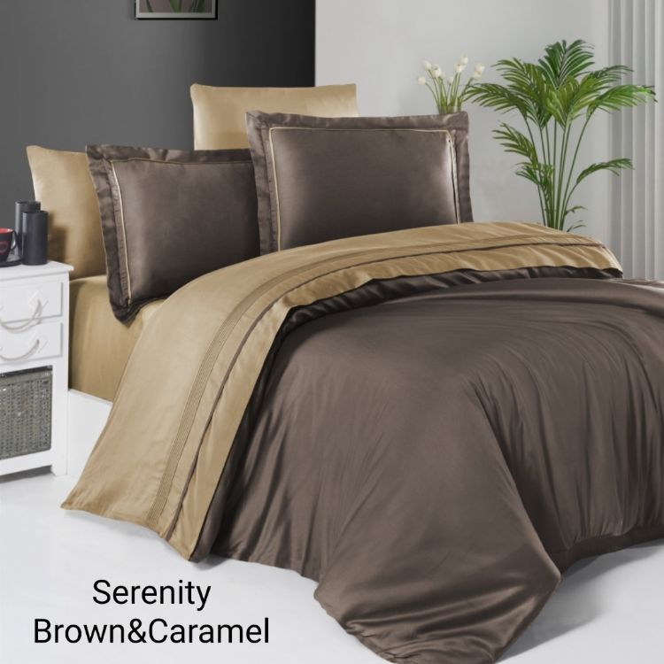 Постельное белье First Choice Satin Deluxe Cotton евро Serenity Dark Brown-Caramel