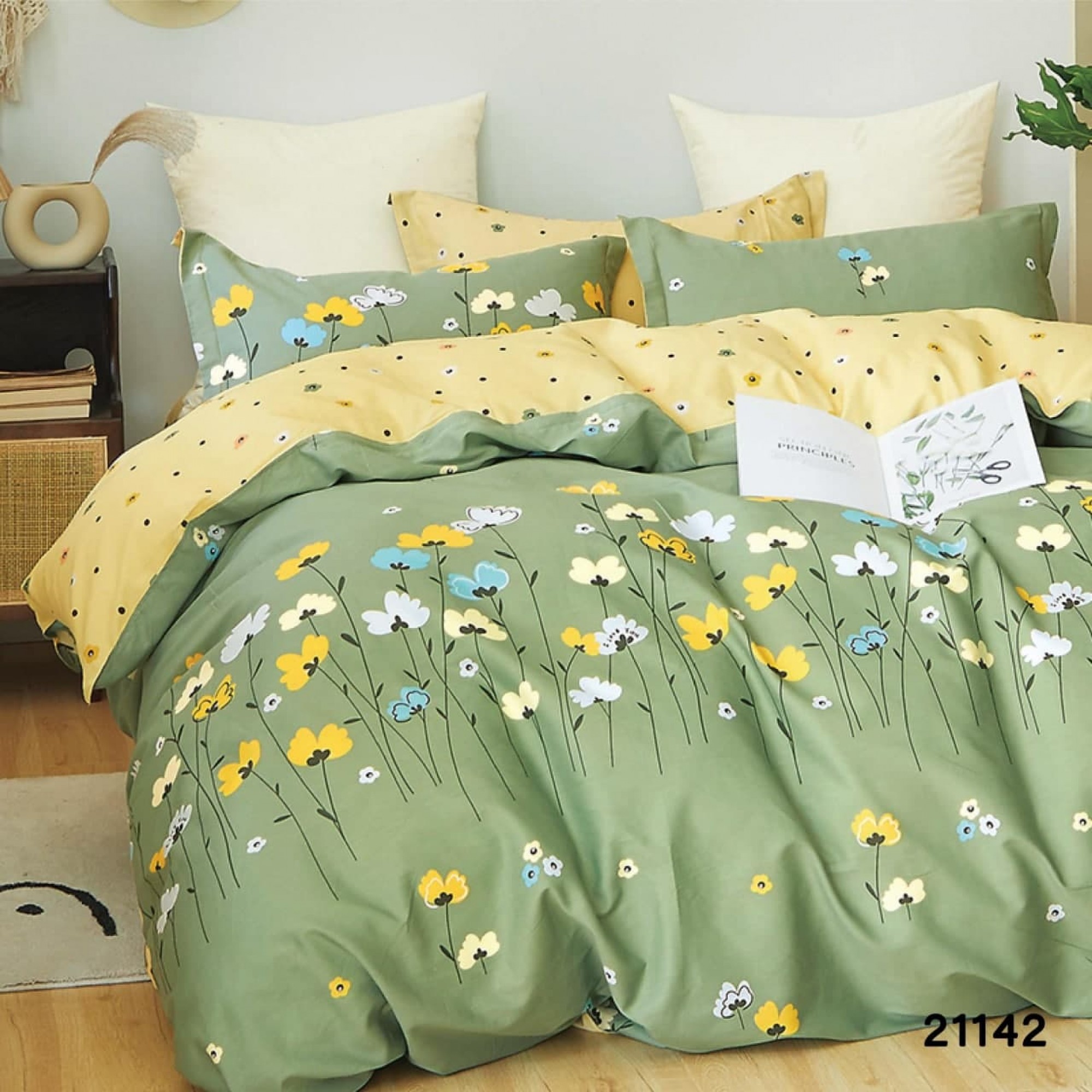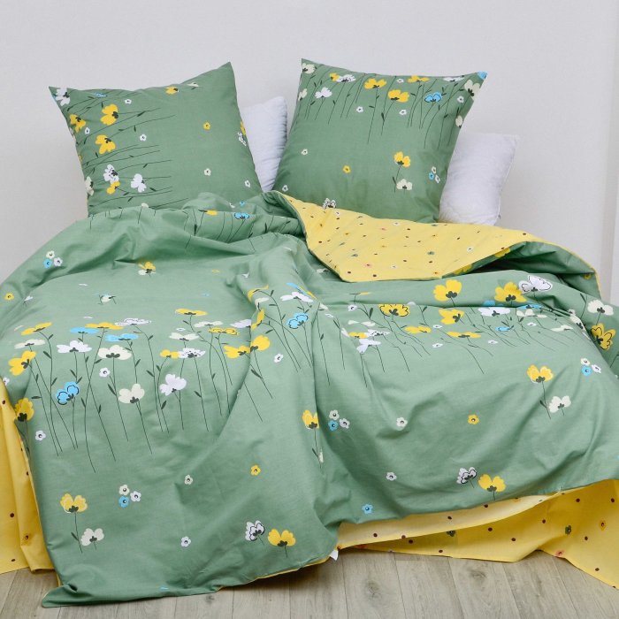 Зелёное постельное белье украинского производителя Viluta с полевыми цветами.