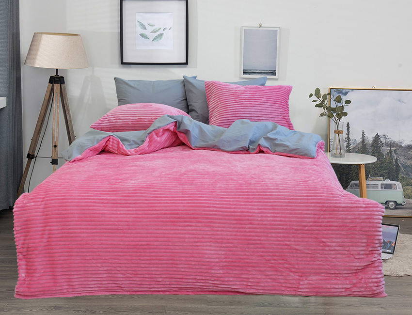 Модель с двухсторонним пододеяльником (серый и фуксия) на молнии: с одной стороны велсофт, с другой - обычная ткань. Можно использовать как с одеялом, так и без.