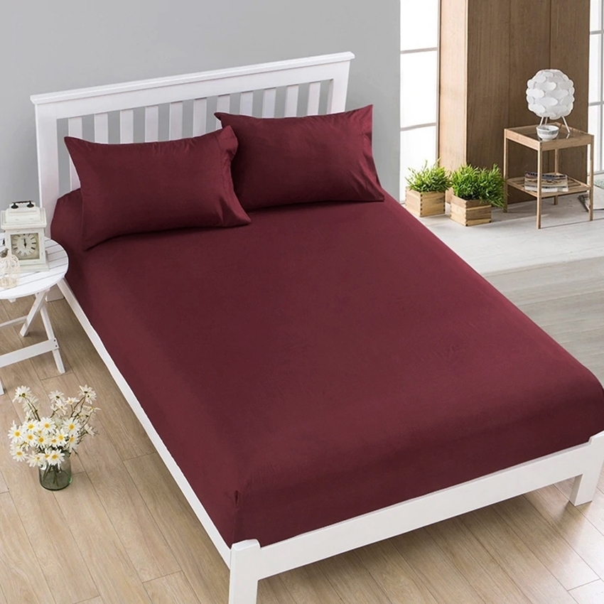 Простынь на резинке ST-1014 сатин TAG 180x200+20 бордовая