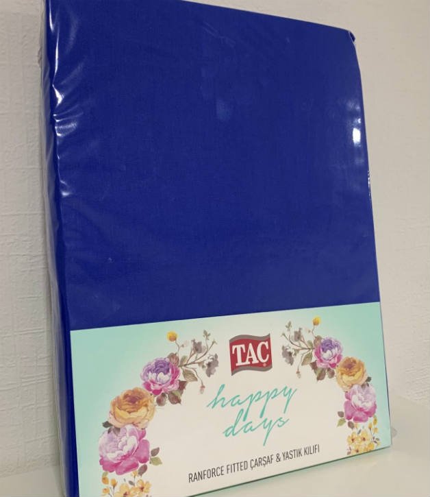 Простынь на резинке Tac CRF Carsaf set saks 180*200 с наволочками синяя