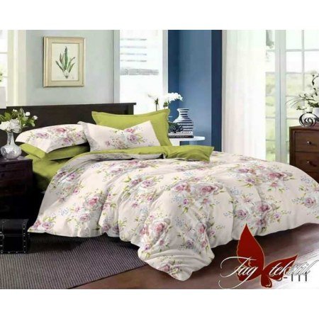 Простынь и низ пододеяльника модели S-111 окрашена в оливковый цвет, а верх белый с неяркими розовыми цветами.