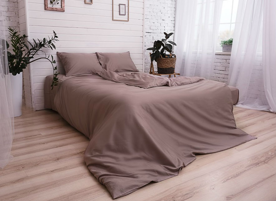 Бежевое и кофейное постельное белье