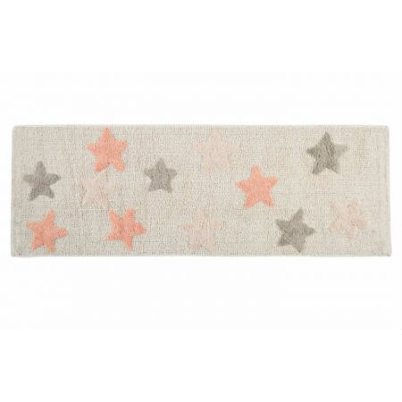 Мягкий узкий прямоугольный коврик для ванной комнаты Star Ekru песочного цвета с разноцветными звёздами. Производство ТМ Irya (Турция).