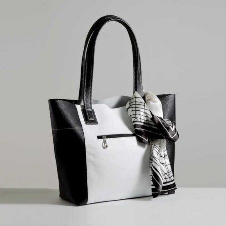 Женская модель 3 Черно-белый флотар выполнена из натуральной телячьей кожи чёрного и белого цвета, отделанной тиснением под рептилию.