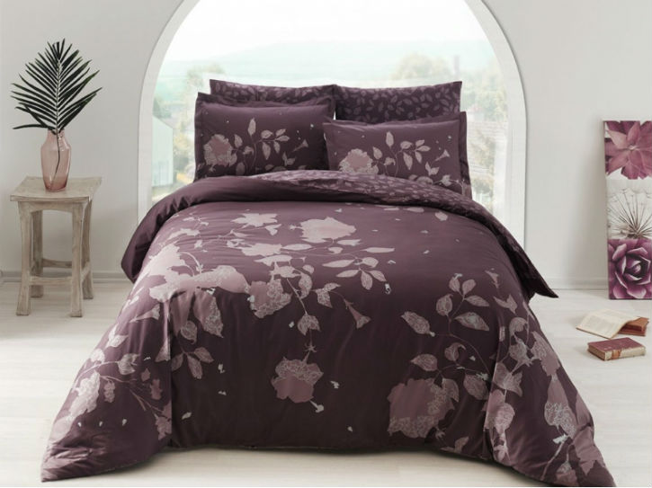 Постельное белье Tac сатин Delux Sherly murdum v4 фиолетовое