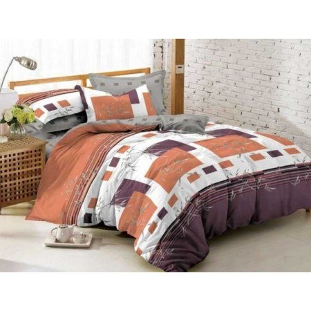 У комплекта 201035 "Колорит" серая простынь и нижняя часть пододеяльника, а верх выполнен в комбинации белого, фиолетового и кирпичного.