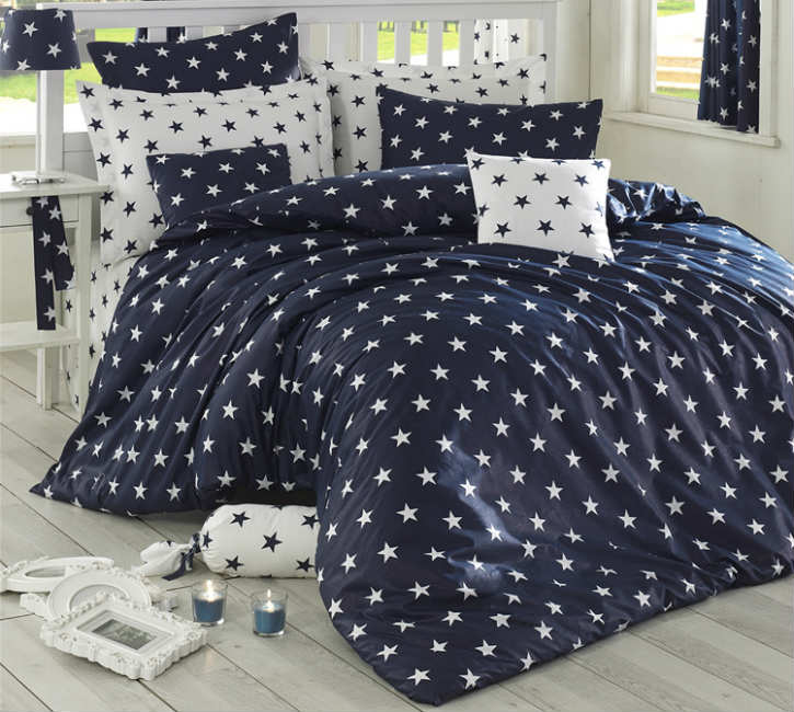 Модель Black Night со звёздами на белом и синем фоне выполнена из мягкого хлопчатобумажного материала.