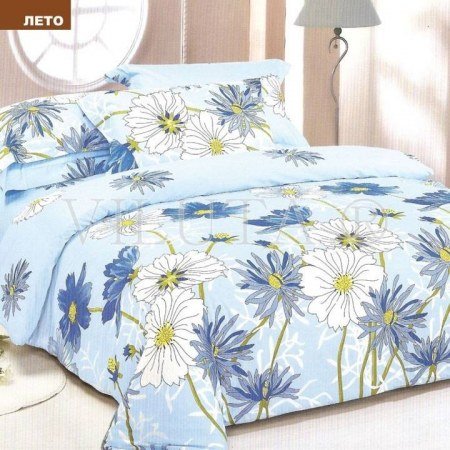 Модель "Лето" от украинского производителя Вилюта выполнена в нежно-голубом тоне с белыми и синими цветами. Каждая хозяйка захочет купить постельное бельё нежного небесного цвета, чтобы сделать комнату ещё изысканнее.