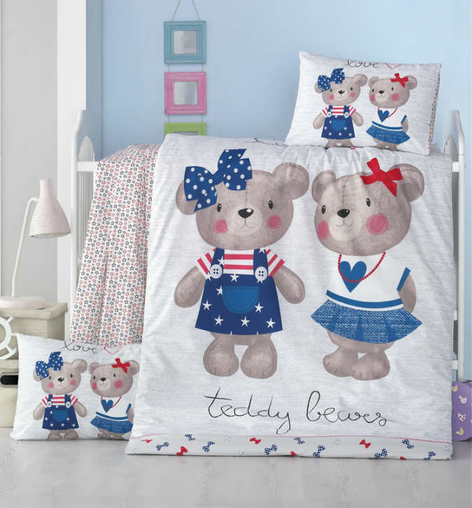 В состав входит натуральный хлопок, благодаря чему комплекты не линяют, не кашлатятся и приятны к телу. Детский текстиль из данной ткани выдерживает большое количество стирок, за ним легко ухаживать.