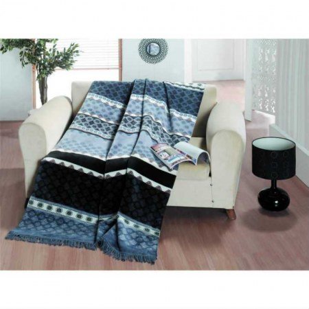 Плед «Aqua» имеет чёрно-синюю расцветку и представлен в размере 150 на 200 сантиметров.