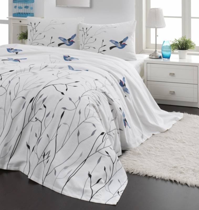 Покрывало-пике Lotus Home Perfect Birds голубое
