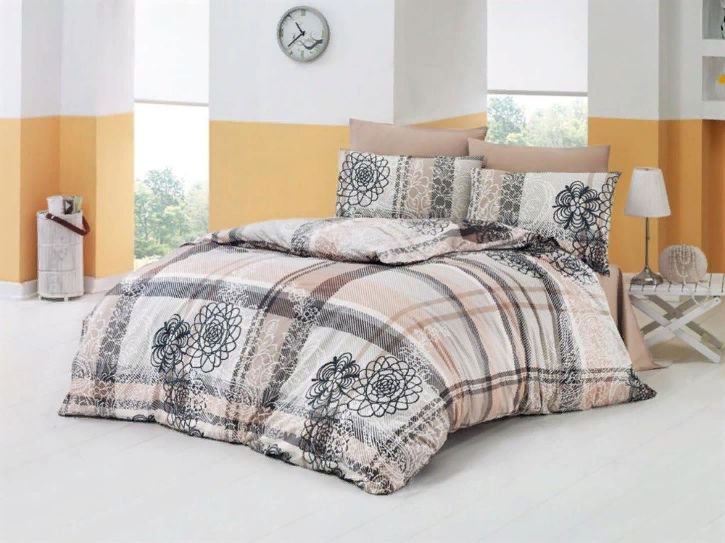 Бежева та кавова постільна білизна