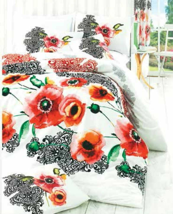 Модель Merve с маками на белом фоне выполнена из мягкого хлопчатобумажного материала.