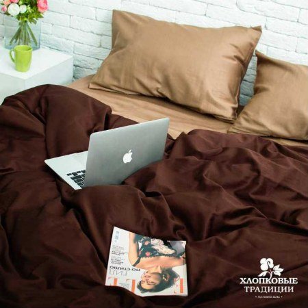 Постельное белье Хлопковые традиции сатин SE010 капучино-шоколад