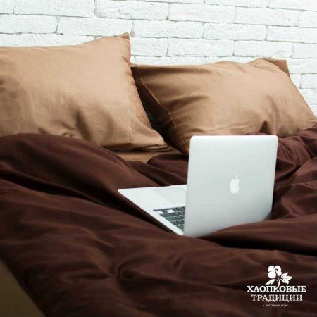 - Модель Безграничное удовольствие SE 010 из натуральной сатиновой ткани выполнена в двух цветах. Простынь и наволочки цвета кофе с молоком, пододеяльник коричневый.
