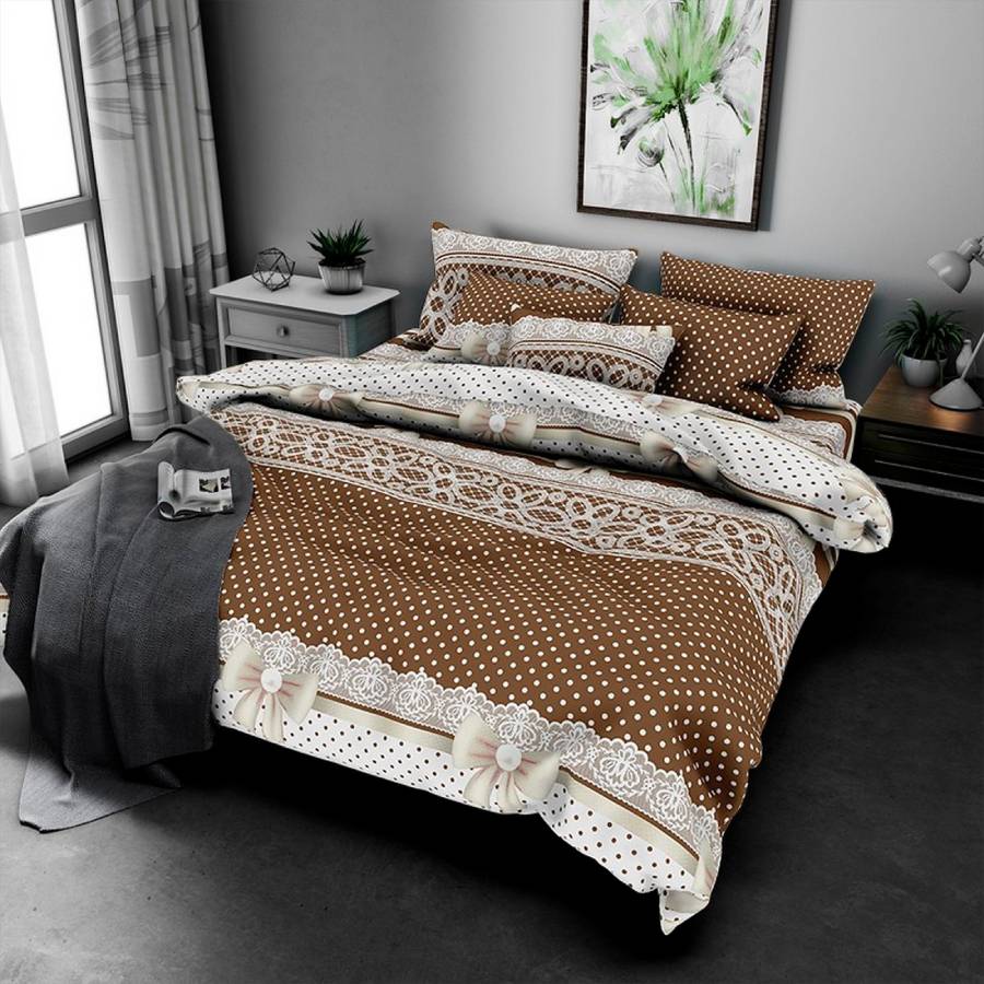 Бежева та кавова постільна білизна