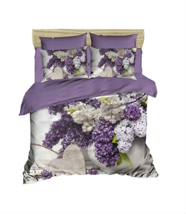 Модель White Lilac выполнен в светлых тонах с объёмным коллажем из перьев на пододеяльнике.